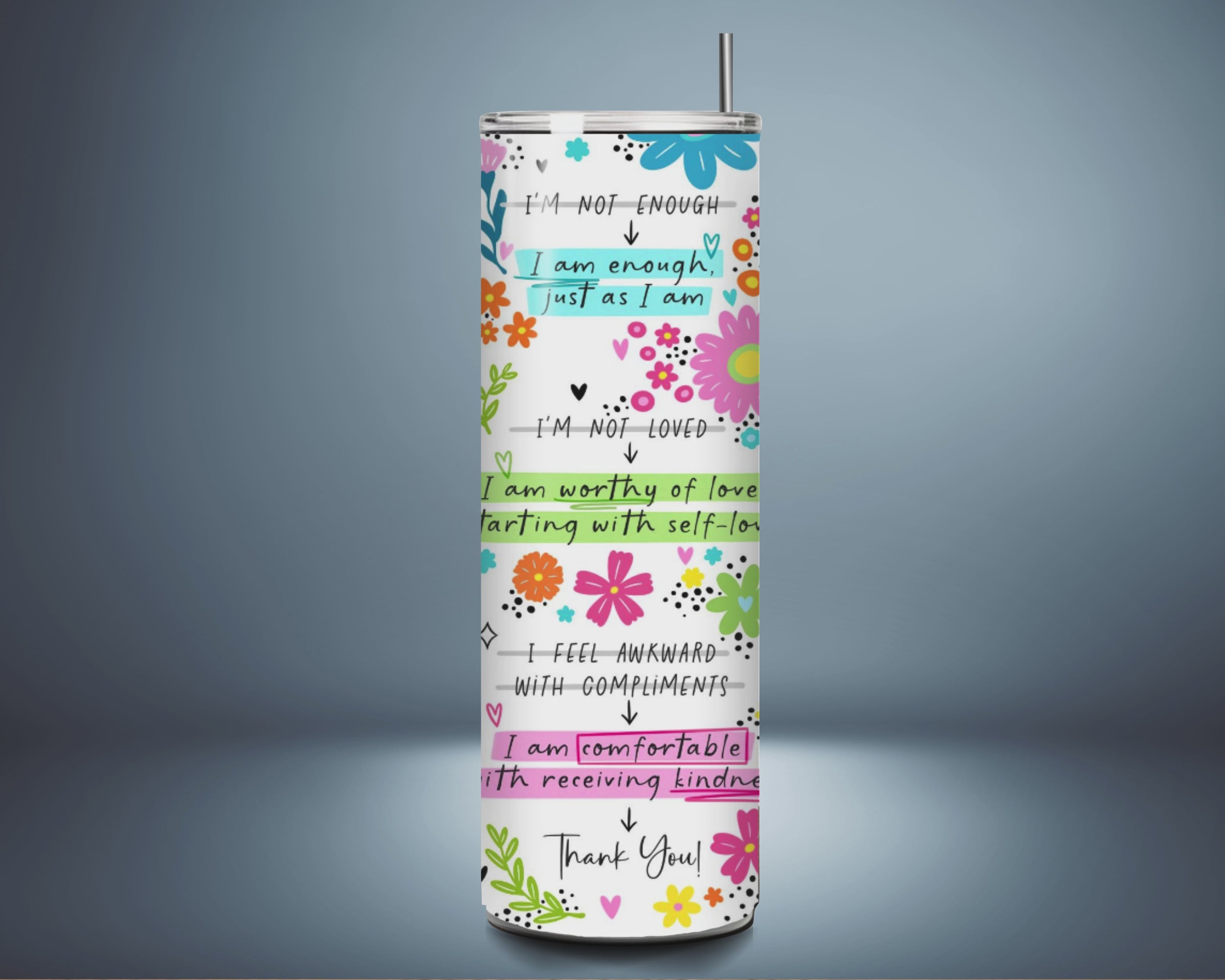 This isn’t just a tumbler - it’s a pep talk in a cup. Covered in affirmations and floral flair, this is your daily reminder that mindset is everything. Whether you’re powering through a Monday or manifesting magic on a Sunday, this beauty’s here to help you reframe the blah into brilliance.